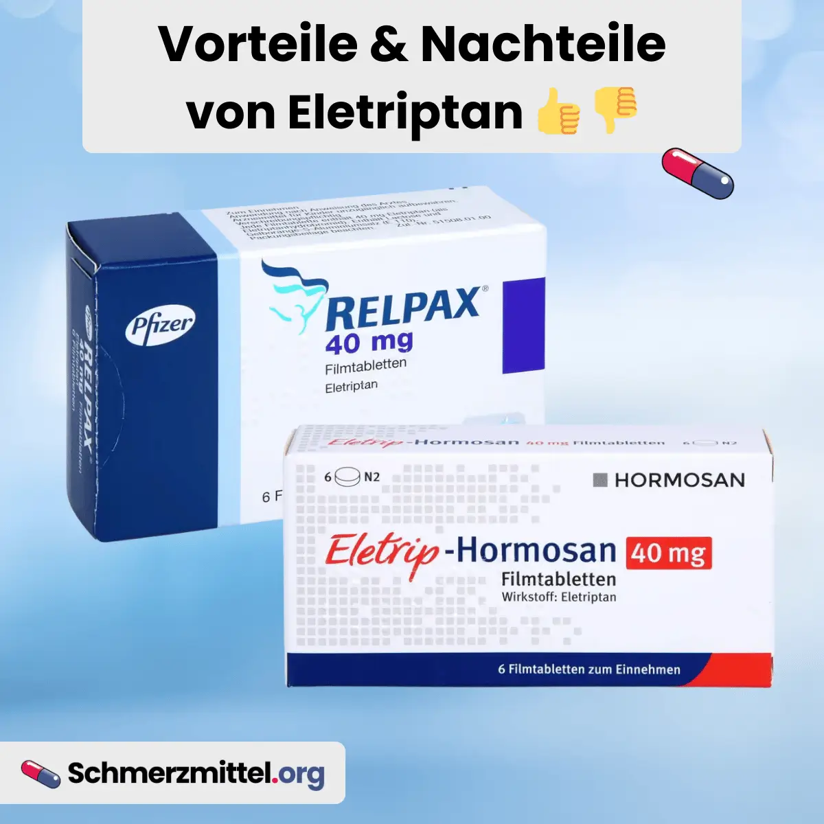 Zudem gibt es Sumatriptan auch als Nasenspray oder Injektion, was bei starker Übelkeit ein riesiger Vorteil ist, da Eletriptan nur als Tablette existiert.