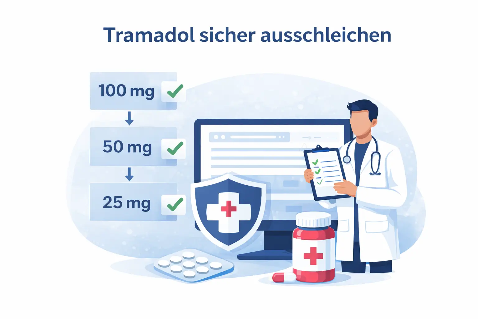 Das Ausschleichen ist die goldene Regel beim Absetzen von Opioiden wie Tramadol. Dabei wird die Dosis über mehrere Wochen in kleinen Schritten reduziert, damit der Körper die Umstellung kaum bemerkt.