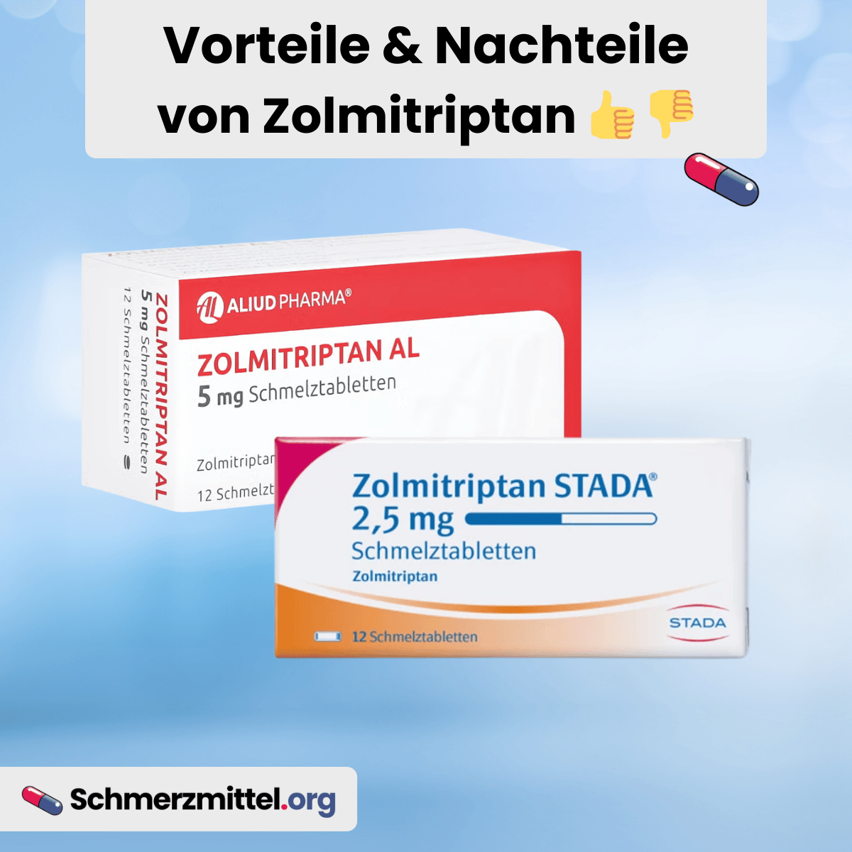 Zolmitriptan wurde genau dafür optimiert und kann sowohl als Tablette als auch als Nasenspray verabreicht werden, was die Flexibilität für den Patienten deutlich erhöht.